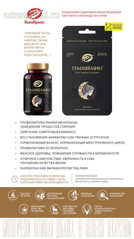 «Гемафемин» наполняет Вас неиссякаемой энергией молодости в любом возрасте! Почувствуйте разницу!