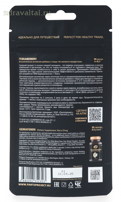 Вы можете приобрести Гемафемин по выгодной цене в интернет-аптеке Здравница.